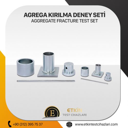 Agrega kırılma değerli deney seti dünya kalite standartlarına göre üretilmiştir. Kullanımı son derece kolay ve pratiktir. Agregaların üzerine kademeli olarak basınç uygulandığında kırılmaya karşı direncini ölçmek için kullanılan bir deney setidir. Agrega taş, kum, çakıl, mıcır gibi beton yapılabilecek olan malzemelerin tamamına verilen isimdir. Buna göre bu deney setinde agrega numunelerine belirli kademelerde arttırılarak basınç uygulanır. Bu yükün altında kalan agreganın ne kaar basınçta kırıldığını ölçümlemek amacıyla kullanılır. Deney seti içerisinde çelik silindir, basınç uygulamaya yarayan piston, taban plakası, şişleme çubuğu ve silindirik ölçü kabı bulunur ve sipariş ile birlikte tamamı gönderilmektedir.