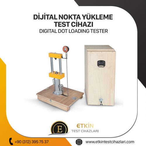 Dijital nokta yükleme deney cihazı hem laboratuarda hem de inşaat sahasında kullanım için son derece uygundur. Bir kayanın, taş parçasının ya da kum, mıcır gibi agregaların dayanım değerini bulmak için kullanılır. Bu cihaz ile kaya örneklerine nokta yüklemeleri yapılır. Bu şekilde kayacın ne ölçüye kadar dayanabileceği ölçümlenebilir. Cihaz üzerinde hidrolik bir el pompası bulunur. Deney gövdesine 60 Kn kapasite ile el pompası aracılığıyla yükleme yapılır. Cihaz üzerinde bu şekilde bir hidrolik pompa, deney gövdesi ve dijital okuma ünitesi bulunur.