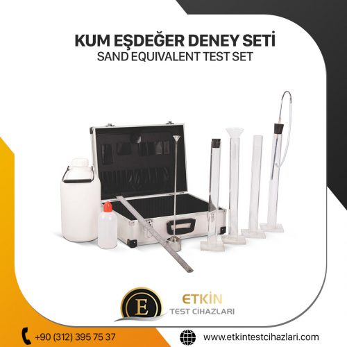 Kum eşdeğerli sallama cihazı TS kalite standartlarına uygun olarak üretilmiş bir cihazdır. Test aşamasında kum eşdeğeri ölçü silindirlerinin sallanması için kullanılır. Ölçü silindirleri, mezür adı verilen laboratuar ekipmanıdır. Laboratuarda inceleme yapılabilmesi için kum ve eşdeğerlerinin belirli bir hızda ve ritimde sallanması gerekir. Belirlenmiş hareket aralıklarında dengeli ve homojen bir biçimde malzemenin sallanabilmesi için kullanılan bir cihazdır.