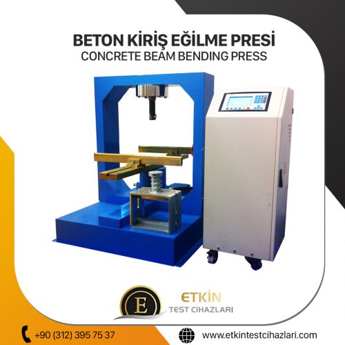 Kapasitesi farklı boyutlarda meydana getirilen ölçütlerin farklı aparatlar kullanılarak test edilmesi için beton kiriş eğilme test presi tasarlanmıştır. Üretimi gerçekleştirilen cihaz ise değişik boyut ve özellikteki beton kiriş, beton veya doğal taş bordür, beton terrazo karo eğilme deneylerini yapabildiği gibi ayrıca zemin döşemesi için beton kaplama plâk ve doğal kaplama taşı eğilme deneylerini yapar. Bu taşların çekme deneylerinde numunelerinin güvenilir ve tutarlı sonuçlarının ortaya çıkmasını sağlar. Dünya genelinde kabul görülen standartlara göre üretimi gerçekleştirilmiş ürün CE normlarına da uygun olarak üretimi meydana getirilmiştir. Cihazın çıkardığı test sonuçları dijital olarak yazılım yapılabilinir.