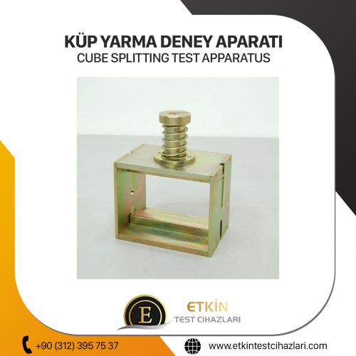 TS EN standartlarına uyarak üretimi gerçekleştirilen küp yarma deney aparatı beton numuneler üzerinde kullanılır. Küp beton numuneleri üzerinde gerçekleştirilen deneylerde doğru ve güvenilir sonuçları elde edebilmek adına üretimi gerçekleştirilir. Üzerinde yer alan oynar başlık ise ürünün üzerine tam yerleşmesini sağlar. Üst taraftan basınç yapılmasını sağlayan plaka küpün aparatın üzerinde deney yapılmasını kolaylaştırır. Alt basınç plakası ise küp numunenin aparat üzerine yerleşmesinde etkili parça olarak görülür. Kolay yerleşimin gerçekleşmesi deneyin doğru yapılmasında etkili olur.