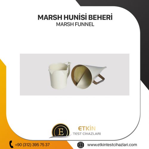 Sondaj viskozitesini belirlemek için jeolojik araştırma departmanları ile petrol şirketleri tarafından daha çok kullanılan özel paslanmaz çelikten yapılan Marsh Hunisi Viskometresi ürünü, basit yapısı ile kullanım kolaylığı sağlar. Akışkan malzemelerin üzerindeki viskozite ile birlikte sondaj çamurları viskozite ölçümü içinde kullanılan huninin ağız açıklığı 4,7 milimetredir, ağzının yarısında 2 mm gözeneklere sahip elek yer alır. Hem yapı malzemeleri hem de medikal alanda gerekli olan test cihazlarının tedariğinde hizmet sunan Etkin test cihazları olarak müşteri memnuniyetini ön planda tutan hizmetler sunuyoruz.